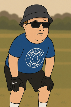 Won’t stop talking about the “old days” — allegedly once ran a 4.4 forty. Witnesses? None. Video? Missing. Proof? Fictional.